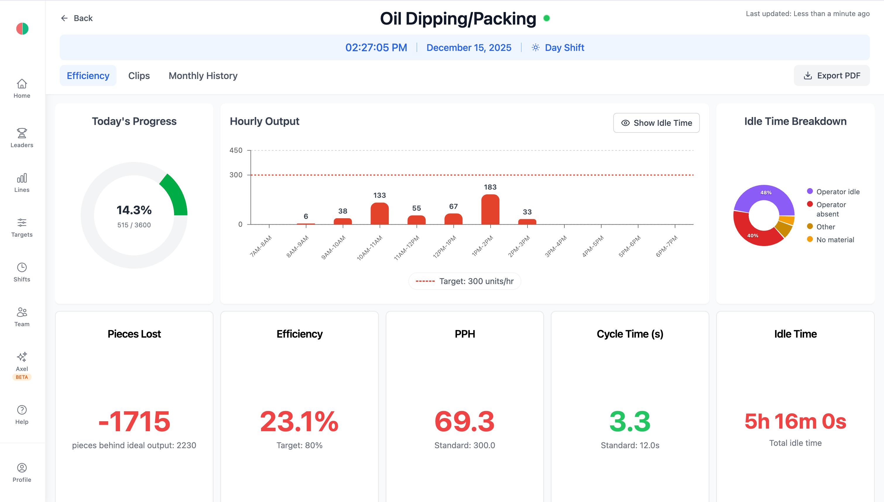Continuous monitoring revealed that micro-stoppages across manual stations were adding up to nearly 1 hour of idle time per workstation per shift. This transformed idle time from an invisible issue into a measurable, actionable opportunity for productivity gains.
